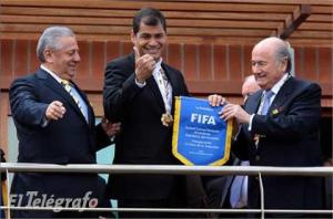 El presidente de la FIFA, Joseph Blatter, y el mandatario ecuatoriano Rafael Correa presidieron el lunes la inauguración de la nueva sede de la selección de fútbol de Ecuador.