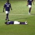 Baise quiso despejar un centro del equipo rival, se tiró e hizo la mítica «escorpión». La pelota le pegó en el taco y terminó en el arco propio.