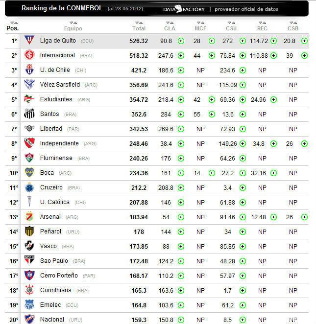Estan totalmente equivocados, en la pagina de la conmebol Universidad de chile aparece como primero, liga esta quinto… deberia informarse mejor antes de publicar una noticia