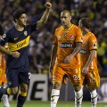 El argentino Boca Juniors derrotó al ecuatoriano Barcelona por 1-0 (1-0), en un duelo por la quinta fecha del Grupo 1 de la Copa Libertadores de América 2013, jugado la noche del miércoles en el estadio La Bombonera. Nicolás Blandi (8 minutos) marcó el gol para el triunfo del equipo auriazul.