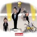 La revista «France Football», co-organizador del Balón de Oro junto con la FIFA, ha publicado este miércoles un caricatura que resume de forma perfecta y mordaz lo que la ha sido el resultado final de la votación de 2013.