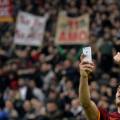 El capitán de la Roma, Francesco Totti, celebró un gol en el derbi romano haciéndose un ‘selfie’ (autofoto) con un teléfono móvil, este domingo en el transcurso del partido contra la Lazio.