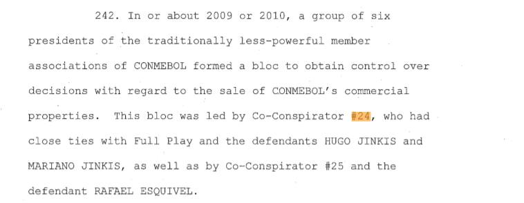 Dentro de los expedientes que hace público dicha Fiscalía asevera que el co-conspirador #24 sería quien sirvió de mediador en las negociaciones para formar la empresa DATISA (Full Play, Traffic y Torneos), encargada de la transmisión de los partidos para la Copa América y las próximas ediciones.