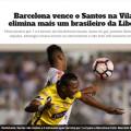 La prensa brasileña destacó anoche el triunfo de Barcelona como visitante ante Santos por 1-0, y con ello su paso a las semifinales de la Copa Libertadores 2017.