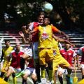 La primera media hora del partido fue un dominio total del dueño de casa. Un fútbol en que se reflejó la idea del ‘Lolo’ Favaro. Pero cuarenta minutos tardó en llegar el gol del ‘Rojo’ que llenó de ilusión a todo El Nacional, fue obra de Pedro Larrea luego de un débil rechazo de la defensa visitante.