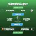 En la otra llave, el Tottenham Hotspur jugará contra el Ajax, que sorprendentemente eliminó a la Juventus de Cristiano Ronaldo el martes. Los ‘Spurs’ se clasificaron este miércoles a pesar de perder 4-3 en la vuelta (4-4 en el global) de su serie ante el poderoso Manchester City.