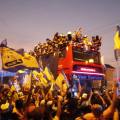 Delfín Sporting Club consiguió el primer título de su historia y el estallido de júbilo no solo se dio en el estadio Jocay, sino en todo Manta. Al término del compromiso, un bus de dos pisos, esperaba afuera del escenario deportivo a los nuevos monarcas.