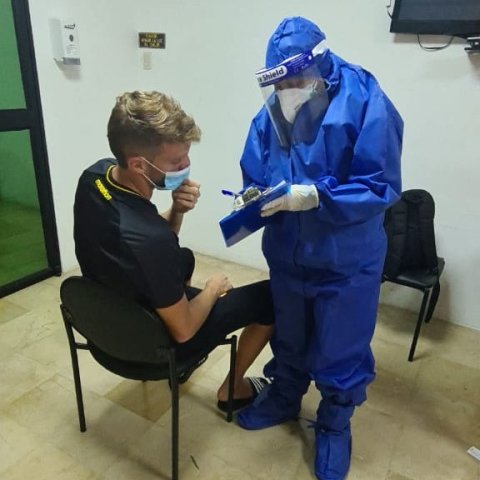 Adicionalmente, indica el Twitter del club, «esta mañana el Ministerio de Salud realizó más pruebas PCR de COVID-19 a jugadores y cuerpo técnico de BSC». En imágenes se muestra al guardameta Javier Burrai y un miembro del comando técnico de Fabián Bustos.