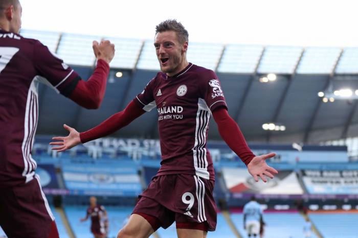 Jamie Vardy, con tres goles, lideró al Leicester que goleó este domingo al Manchester City por 5-2, en una jornada en la que el Leeds United firmó una victoria importante contra el Sheffield United por la mínima (1-0).