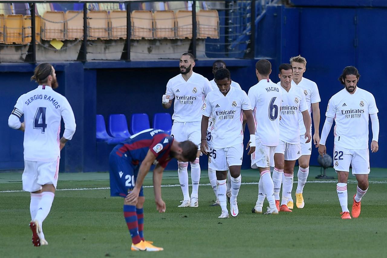 El Real Madrid reencontró su trono: por primera vez esta temporada, el actual campeón de LaLiga recuperó el sillón de líder al imponerse en campo del Levante por 2-0, este domingo en la quinta jornada, gracias a los goles de Vinicius y Karim Benzema.