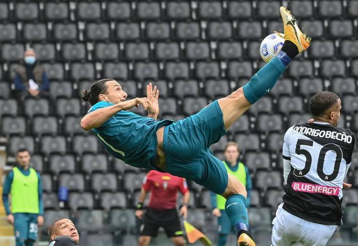Con un gol de chilena en el tramo final del partido, el sueco Zlatan Ibrahimovic ofreció este domingo al AC Milan el triunfo por 2-1 ante el Udinese, que permite a los lombardos mantenerse como líderes destacados de la Serie A.