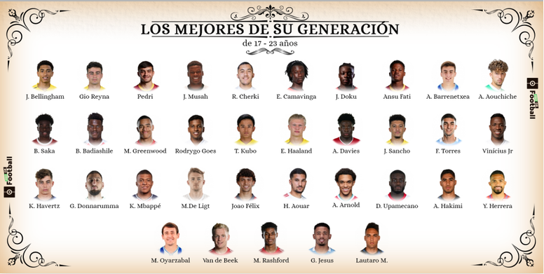 Con los datos de ProFootballDB, hemos intentado identificar a los cinco mejores futbolistas Sub 23 de las generaciones de 1997 a 2003, concretamente, de jugadores que a día de hoy tienen 17, 18, 19, 20, 21, 22 y 23 años. Los criterios para establecer esta clasificación han sido su ELO y su REAP, el cual oscila entre el 1,5 y el 3,0.