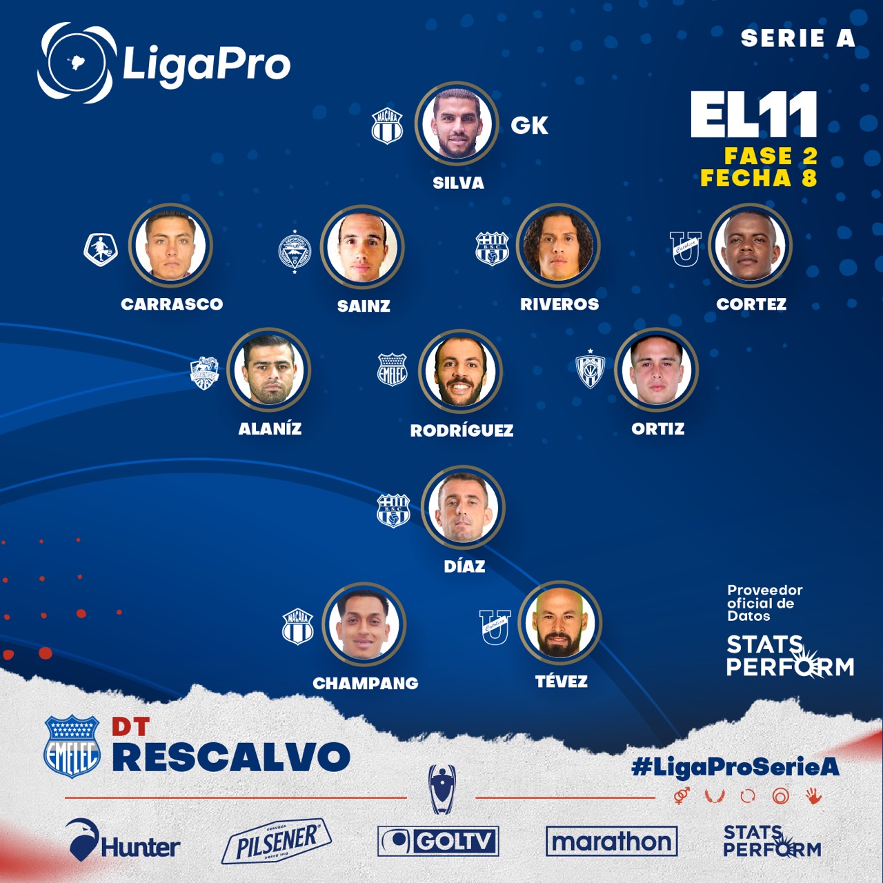 La Liga Profesional del Ecuador dio a conocer el 11 ideal que dejó la octava fecha en la segunda etapa de la LigaPro. El líder Barcelona aportó con dos jugadores. Emelec, que dio la sorpresa en ‘Casa Blanca’, puso a Rodríguez y al DT Rescalvo.