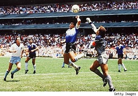 Estuve en el Estadio Azteca cuando Diego anotó contra Inglaterra el mejor gol ilegal y el mejor gol legal en la historia de los mundiales. Para un aficionado, es difícil encontrar otro día que rivalice con ese. Después del partido, el Pelusa mostró con picardía otra de sus cualidades, la capacidad de crear mitologías exprés. Interrogado sobre el manotazo que terminó en las redes de Inglaterra, dijo: «Fue la mano de Dios».