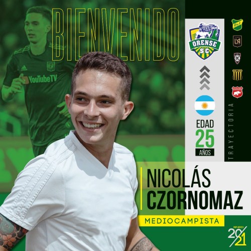 La dirigencia de Orense Sporting Club dio a conocer el nombre del primer refuerzo para la temporada 2021. Se trata del argentino Nicolás Czornomaz, quien llega procedente de Defensores de Belgrano.