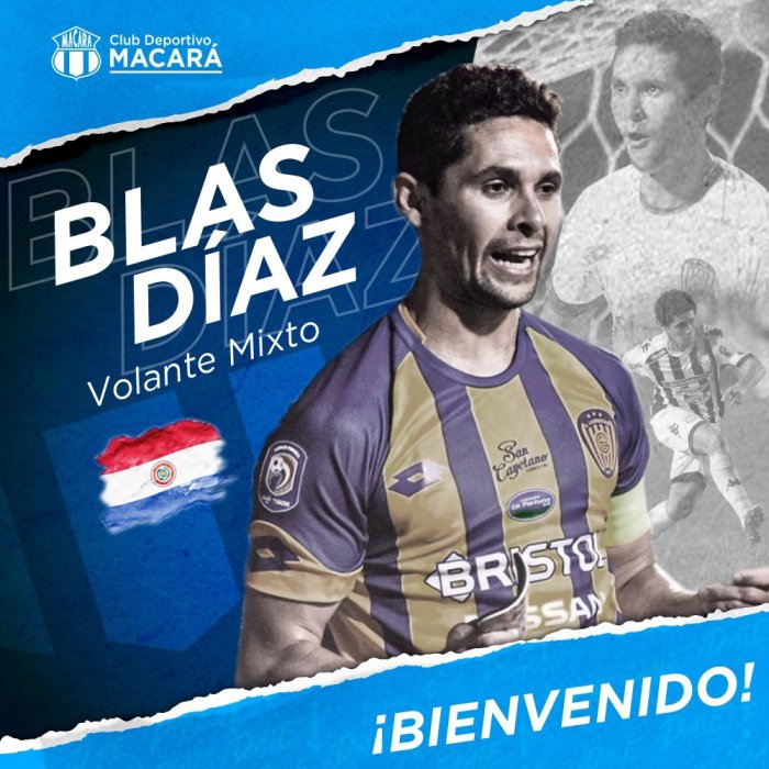 Macará hizo oficial este jueves en horas de la noche, la incorporación del paraguayo Blas Díaz. Este se suma por una temporada y llega procedente del Sportivo Luqueño de su país donde jugó solo por el 2020.