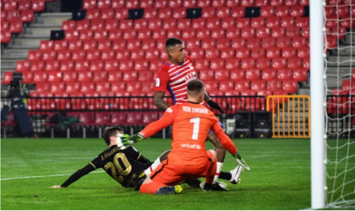 A partir de ese preciso instante, previa lesión muscular de un Sergi Roberto que sería reemplazado por el joven Sergiño Dest, el Barça se toparía continuamente con Escandell y con la madera, como ya le sucedió en Vallecas ante el Rayo. Sin embargo, emergería la figura de Antoine Griezmann, previo fallo de Aarón, para darle un halo de esperanza al Barça en Granada (2 – 1). Igualmente, hay que destacar que una diana de Darwin Machís había sido invalidada un poco antes por una falta del delantero sobre Dest.
