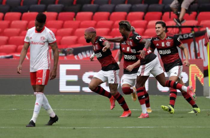 Flamengo destronó de la punta del Brasileirao-2020 al Internacional al vencerlo 2-1 en el Maracaná y acaricia el bicampeonato del campeonato brasileño a falta de una fecha para el final.