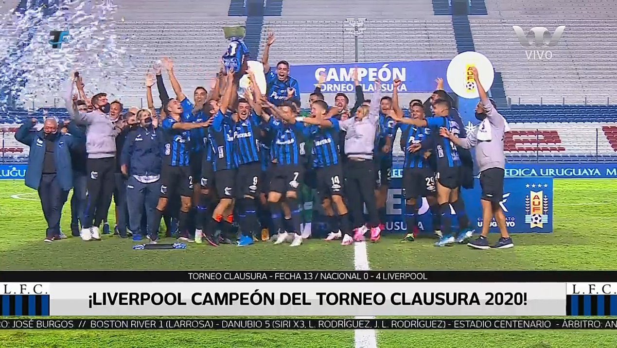 Liverpool se coronó este domingo campeón del torneo Clausura del fútbol uruguayo, al superar a Nacional con un aplastante 4-0 y quedar inalcanzable a dos fechas del final del certamen.