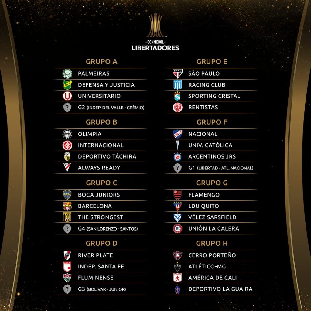 Por su parte, Barcelona S.C. quedó en el grupo C. Sus rivales son Boca Juniors, 6 veces campeón del torneo; The Strongest de Bolivia y el ganador de llave entre San Lorenzo y Santos, que por ahora lideran los brasileños 3-1 en el juego de ida.