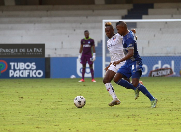 Justamente, Liga de Quito se puso en ventaja con gol del centrocampista Jordi Alcívar (m.60) y el atacante Alejandro Cabeza empató para Emelec (m.79).