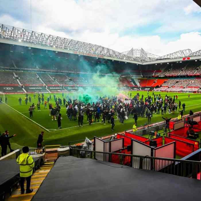 El partido Manchester United vs. Liverpool, que debió jugarse este domingo 2 de mayo en Old Trafford, fue aplazado por la Premier League. La organización del campeonato emitió un comunicado oficial, luego de que unos 200 hinchas de los Diablos Rojos ingresaran al campo para protestar contra los dueños del club.