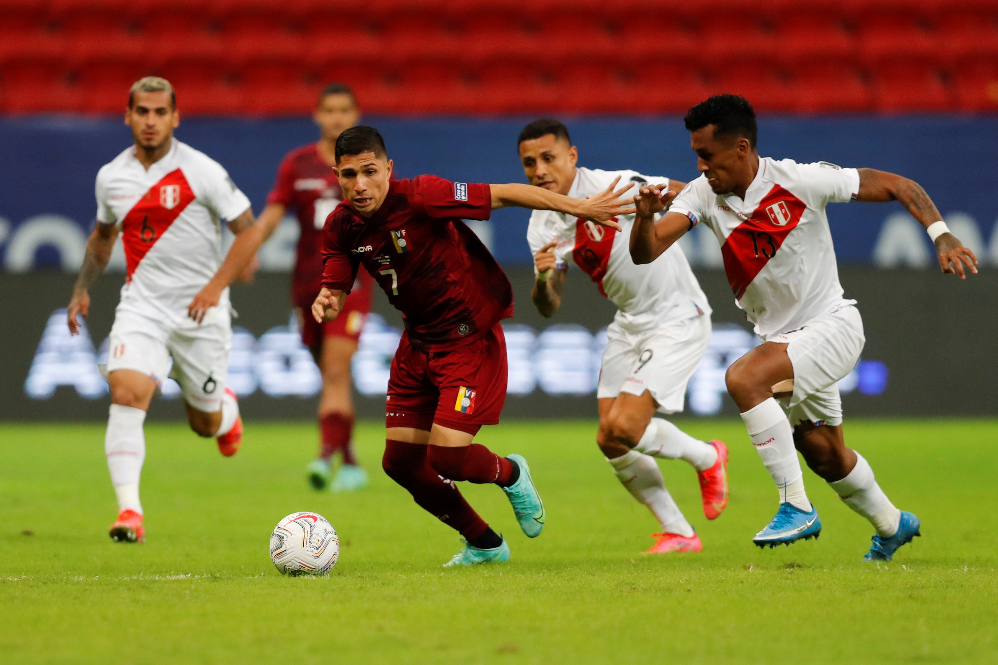 Venezuela y Perú se enfrentaron por la clasificación a la siguiente fase de la Copa América 2021, el marcador final fue 1-0 a favor de los peruanos. El extremo André Carillo anotó el gol de la selección de Perú.