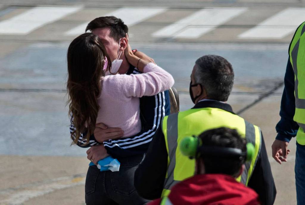 Así Messi demoró muy poco en trasladarse hacia Rosario. Lo esperaba Antonela con el abrazo inolvidable.