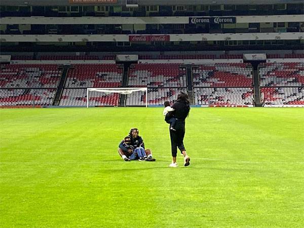 Al término del partido entre las Águilas y Potros de Hierro que se disputó en el estadio Azteca y en el que los de Coapa se impusieron por la mínima diferencia, Lucely Chalá bajó a la cancha para que sus hijos convivieran con el futbolista que no vio actividad en el encuentro.