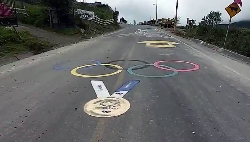El oro olímpico de Richard Carapaz ya está en Ecuador, plasmado en la carretera por la que la Locomotora del Carchi forjó su leyenda, durante sus entrenamientos.