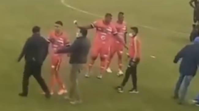 De acuerdo a videos que circularon a través de chat de WhatsApp, se observa a uno de los dirigentes del K´chis corriendo en la cancha para propinarle patadas a Cevallos.
