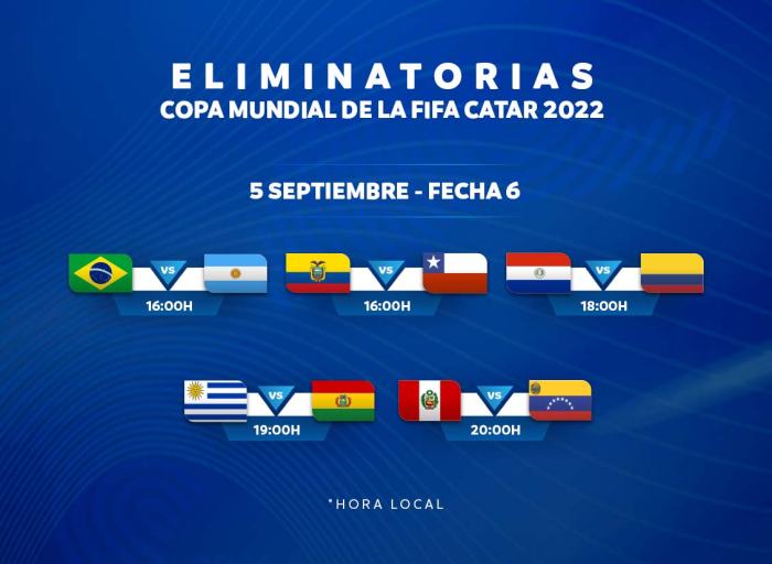 A continuación el programa de juegos de la sexta fecha rumbo a Catar 2022 (la octava en desarrollo):