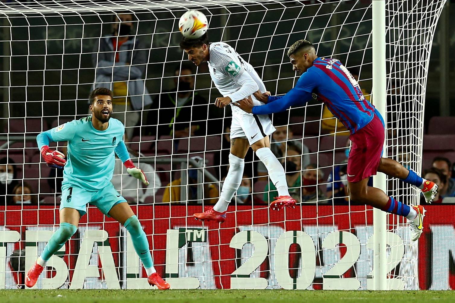El FC Barcelona (7º) salvó un empate (1-1) en su estadio ante el Granada (17º) con un gol in extremis del uruguayo Ronald Araujo (90), este lunes en el cierre de la quinta jornada de la Liga, pero el equipo azulgrana confirmó su pésimo momento, quedando a 5 puntos del líder Real Madrid.