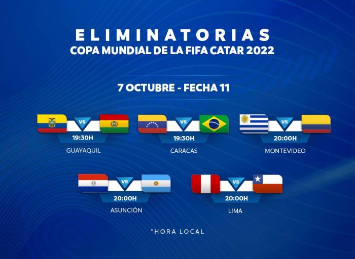 A continuación el programa de juegos de la décima primera fecha rumbo a Catar 2022 (la décima en desarrollo):