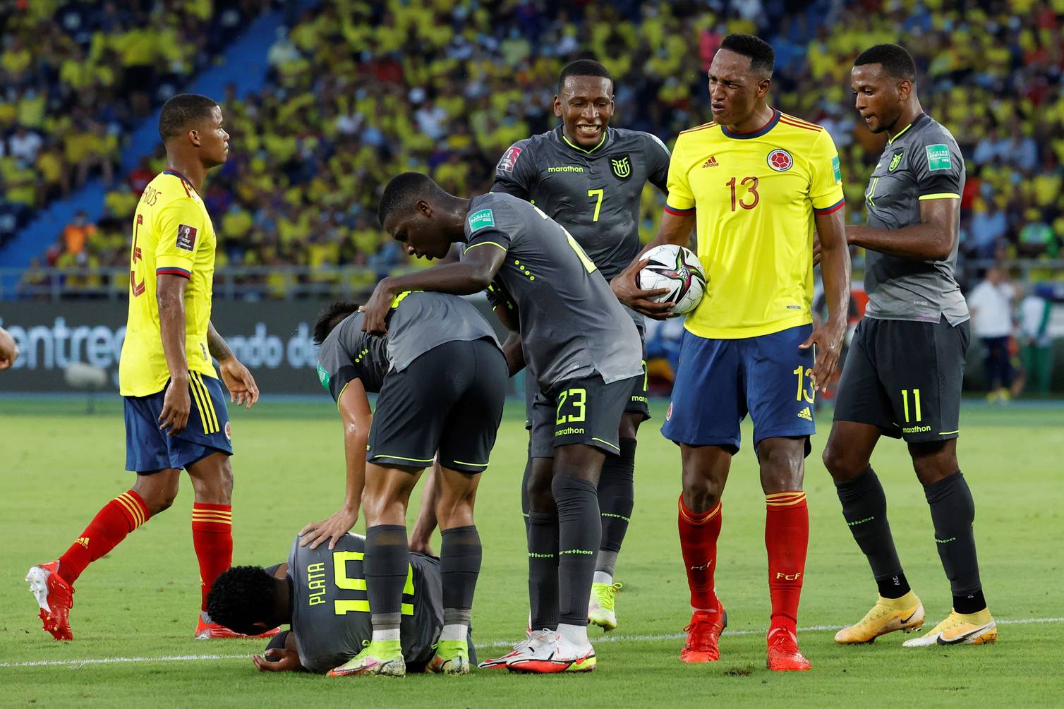 El choque y el juego fuerte marcaron el ritmo del partido, en el que el árbitro peruano tuvo que apelar al VAR para anular la anotación tardía de los cafeteros por una mano del defensor Yerry Mina, además de un penalti que ya había pitado para La Tri en el segundo tiempo por un fuera de lugar en la jugada previa.