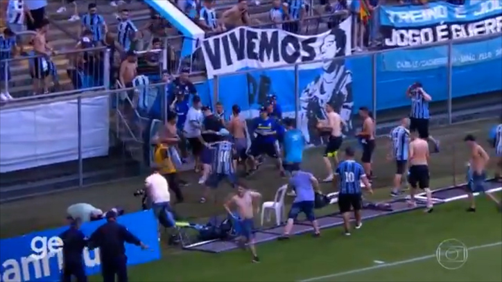 Después de perder por 3-1 contra Palmeiras por una nueva jornada del Brasileirao, donde Gremio equipo está 19° y en zona de descenso directo, varios aficionados del equipo de Porto alegre saltaron al terreno de juego y la tomaron con la cabina del VAR.
