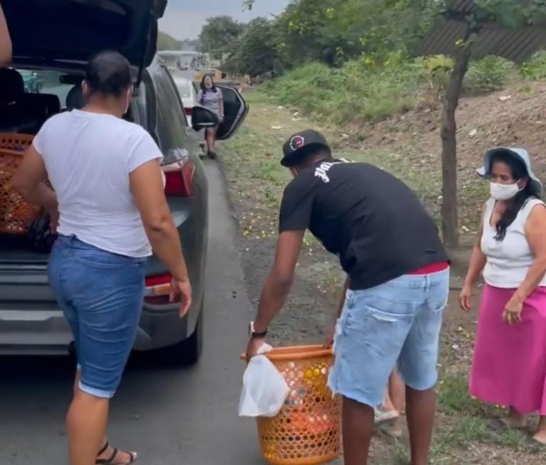 Su hermano captó algunas imágenes del gesto solidario del compatriota con algunas familias.