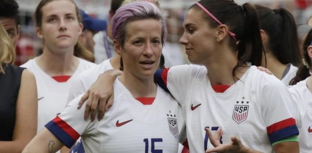 Posteriormente, Rapinoe participó esta mañana en el programa televisivo «Good Morning America» junto a su compañera y también estrella del fútbol Alex Morgan, otra de las caras visibles de la selección femenina en esta batalla.