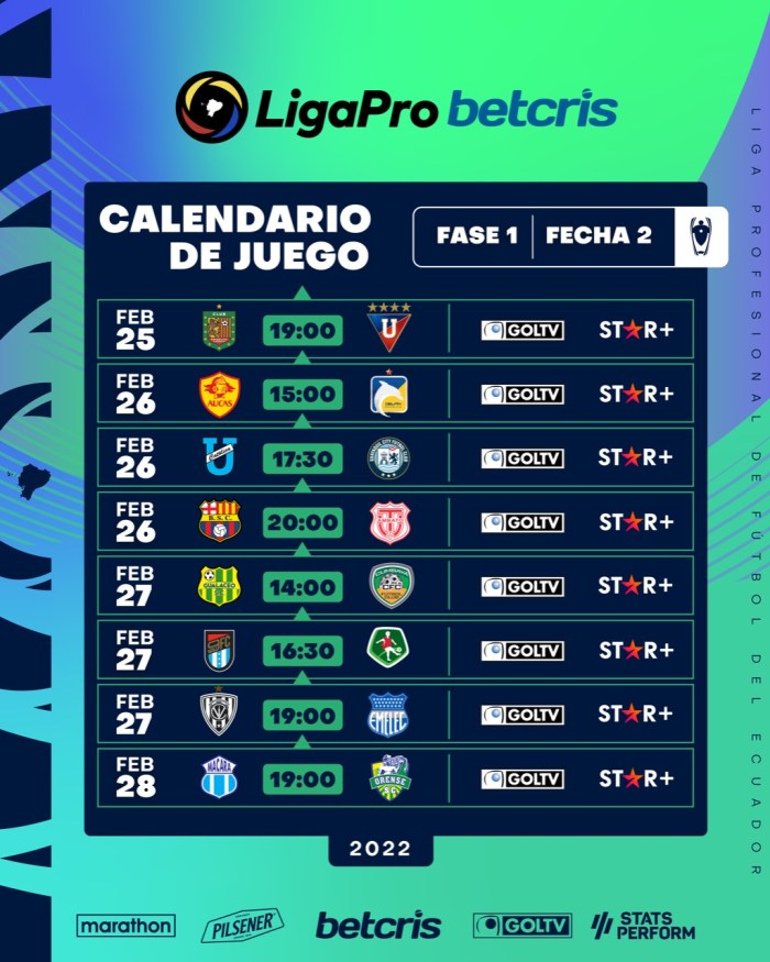Segunda fecha en la LigaPro Betcris 2022, Emelec que arrancó goleando en la fecha inicial y poniéndose en cabeza del torneo, esta vez visitará con sed de revancha al Independiente del Valle en el estadio Banco Guayaquil el domingo, para cerrar la semana de carnaval con un gran partido.