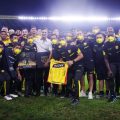 El entrenador Fabián Bustos dirigió esta noche su último partido con el Barcelona SC y por eso el club le preparó un sentido homenaje.