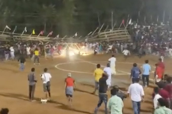 La cancha, ubicada en la localidad de Malappuram, estado de Kerala, sufrió una inesperada y dramática situación cuando una de sus gradas con capacidad para 3500 personas se derrumbó por completo. Más allá de cualquier mal mantenimiento, la misma contaba con casi 8000 espectadores en ese sector -entre ellos niños- que sufrieron fracturas de diversos grados.