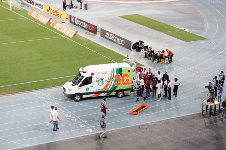 Mario Pineida tuvo que abandonar esta noche el partido del Fluminense en una ambulancia por un choque fuerte con su propio compañero, el arquero Marco Felipe.