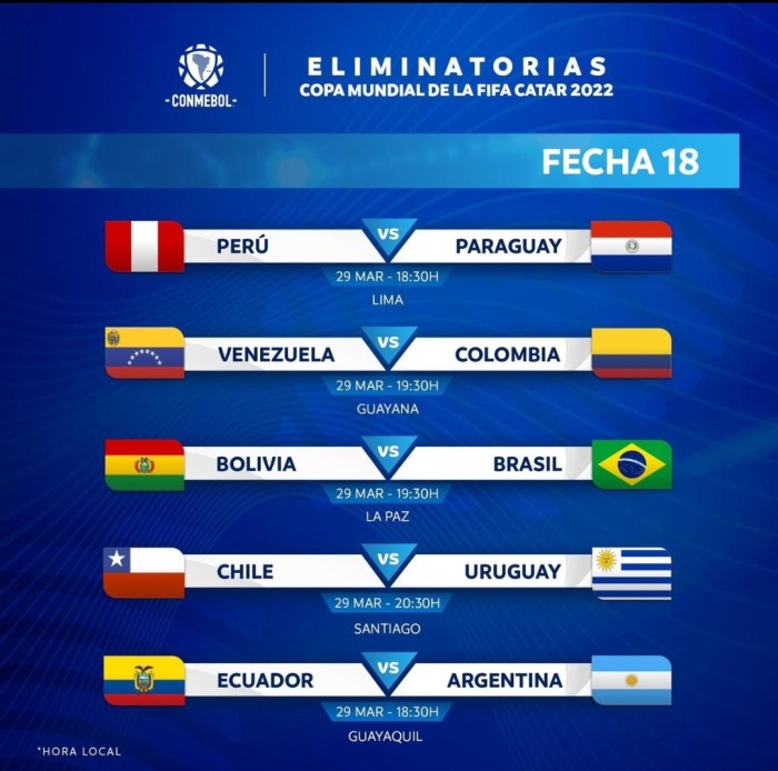 A continuación el programa de juegos de la décima octava fecha rumbo a Catar 2022: