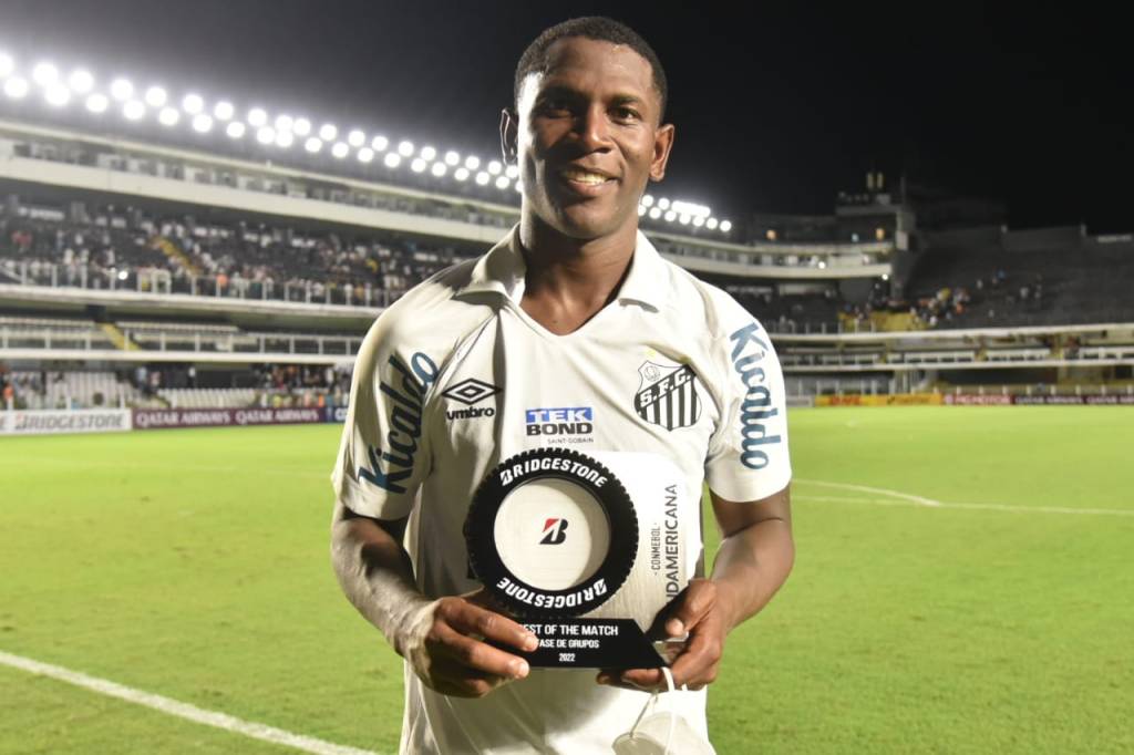 Brayan Angulo fue designado esta noche de Sudamericana como el mejor jugador que tuvo el compromiso donde el Santos superó por tres goles contra dos al cuadro de la Universidad Católica de Quito.