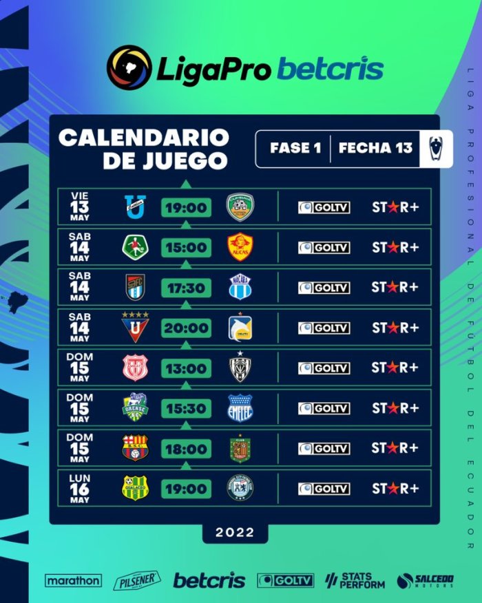 Décima tercera fecha en la LigaPro Betcris 2022, tras superar el Clásico con un buen resultado, el líder Barcelona empieza una recta final donde todo apunta a que logrará el primer cupo a la Final del año, el domingo enfrentará al Deportivo Cuenca en casa y además llegará al partido con resultados conocidos.