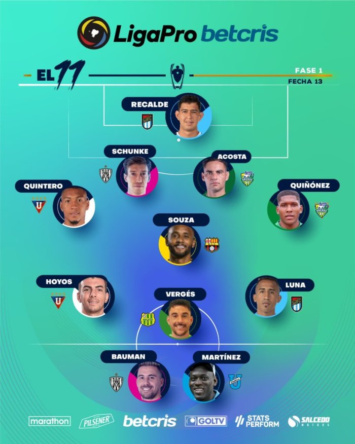 Este día martes, después de una fecha intensa, y que fue la antepenúltima de la primera etapa en la Liga Pro Betcris, la Liga Profesional del Ecuador eligió a los mejores de entre los clubes participantes.