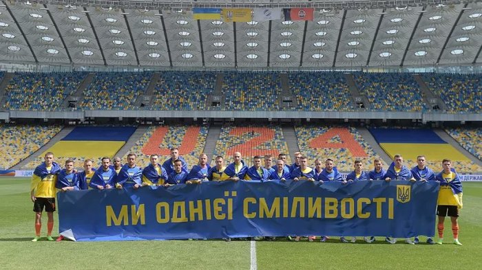 Antes del comienzo, en las pantallas del estadio se reprodujo un mensaje del presidente ucraniano, Volodimir Zelenski, y después del minuto de silencio, un soldado del ejército realizó el saque inicial. «¡Por Ucrania! ¡La vida ganará!», fue el mensaje que publicó la cuenta oficial de Shakhtar Donetsk junto a la tradicional foto del equipo. «Este campeonato demostrará nuestra invencibilidad y proporcionará emociones brillantes que tanto se necesitan ahora», expresó, por su lado, el club Metalist 1925 de la ciudad de Kharkiv, en un comunicado.