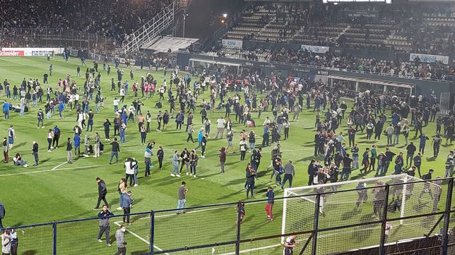 La policía bonaerense utilizó balas de goma y gases lacrimógenos para dispersar a una multitud que pretendía ingresar en el Estadio Único. El partido fue suspendido a los 9 minutos y muchos fanáticos ocuparon la cancha.