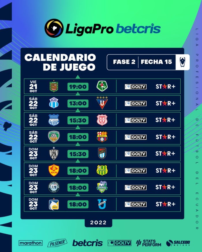 Fecha final en la Fase II y de la temporada regular en la Liga Pro de Ecuador, queda poco por definirse aunque importante, Aucas tiene un 99% o más de opciones de ser el ganador de la etapa y sumarse a Barcelona en la final, esto lo sabremos el domingo tras su partido en horario unificado ante Gualaceo.