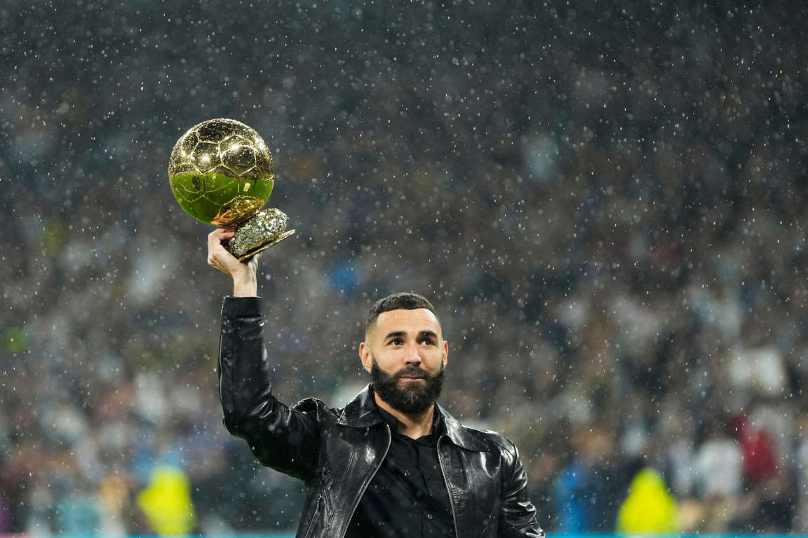 Benzema, de 34 años, recibió el prestigioso galardón en lunes luego de conducir a Real Madrid a los títulos de la Liga de Campeones y la liga española en la temporada pasada. Dos días después, jugó con Real Madrid contra Elche y marcó uno de los tres goles de su equipo.